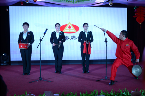 聯(lián)合會(huì )以熱情奔放的舞蹈《相親相愛(ài)》拉開(kāi)了帷幕;以“和諧·平安·共創(chuàng )美好未來(lái)”為主旋律,將安泰燃氣全員的日常工作和生活與公司以人為本的發(fā)展理念緊密聯(lián)系起來(lái),用歡快愉悅的藝術(shù)形式展現了安泰燃氣全員陽(yáng)光向上、積極進(jìn)取的精神風(fēng)貌。安泰員工精心編排的紅歌大合唱《四渡赤水出奇兵》、《山丹丹開(kāi)花紅艷艷》讓觀(guān)眾重溫了紅軍長(cháng)征的革命壯舉,銘記長(cháng)征精神的高尚品德,合唱團的精彩表演,更是博得觀(guān)眾陣陣掌聲;獨具匠心的音樂(lè )快板《安泰贊》表達了員工對公司的熱愛(ài)之情;客服部的小品《收費大廳的故事》,把燃氣公司日常面向用戶(hù)的服務(wù)工作標準與現實(shí)問(wèn)題巧妙結合,妙趣橫生,引發(fā)現場(chǎng)陣陣歡笑,更是把晚會(huì )氣氛推向高潮。整場(chǎng)聯(lián)歡會(huì )內容豐富,唱歌、相聲、三句半、音樂(lè )快板等形式多樣,充分體現出領(lǐng)導與員工其樂(lè )融融的歡慶場(chǎng)面。
